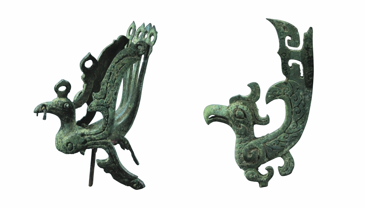 口說無憑,他們似乎還簽下了協(xié)議。在一件金杖上,刻有這樣一幅圖畫:四根羽箭平行射入兩個人頭之中,箭頭分別穿入兩條魚的頭部,箭尾則是兩只展翅的飛鳥。一個新的說法是,兩個人頭代表著“笄發(fā)”和“辮發(fā)”兩個部族,魚和鳥是它們的圖騰,羽箭則相當(dāng)于誓言。這是“笄發(fā)”和“辮發(fā)”們刻下的契約,寫下的是莊嚴(yán)和肅穆。