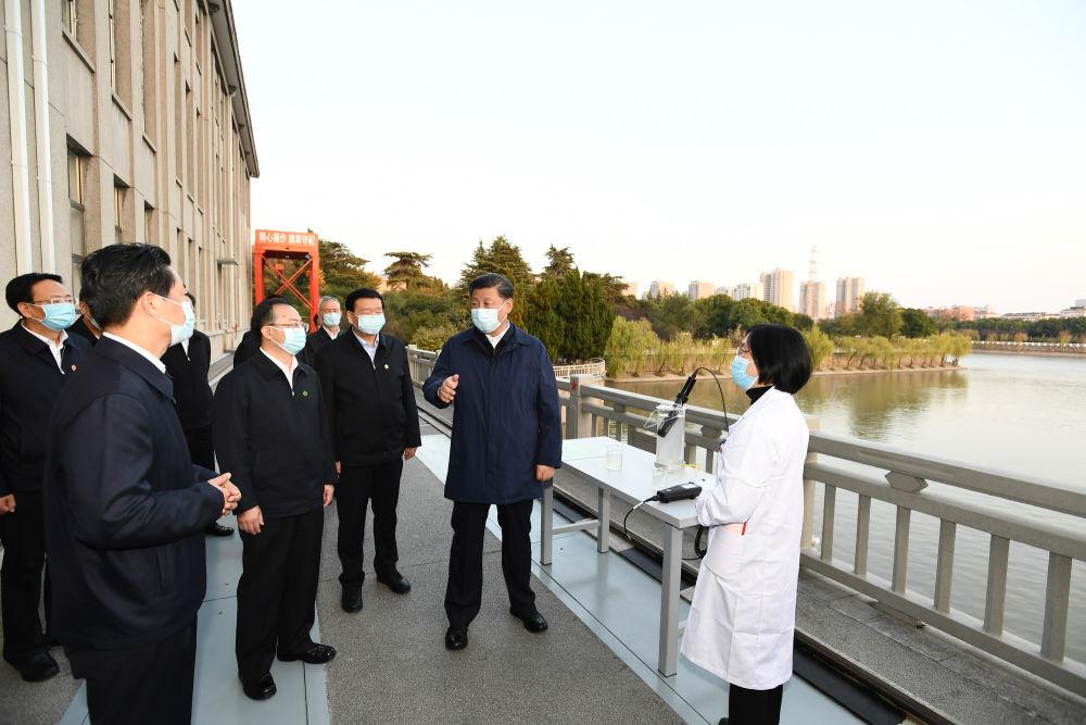 ↑2020年11月13日,在江蘇省揚(yáng)州市考察調(diào)研。這是在江都水利樞紐,了解南水北調(diào)東線工程規(guī)劃建設(shè)和樞紐運(yùn)行等情況。
