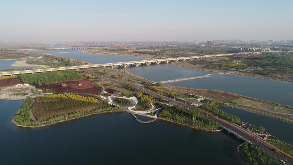 ↑南水北調(diào)生態(tài)補(bǔ)水,讓干涸了幾十年的石家莊母親河——滹沱河重現(xiàn)生機(jī)(無人機(jī)照片,2021年4月13日攝)。