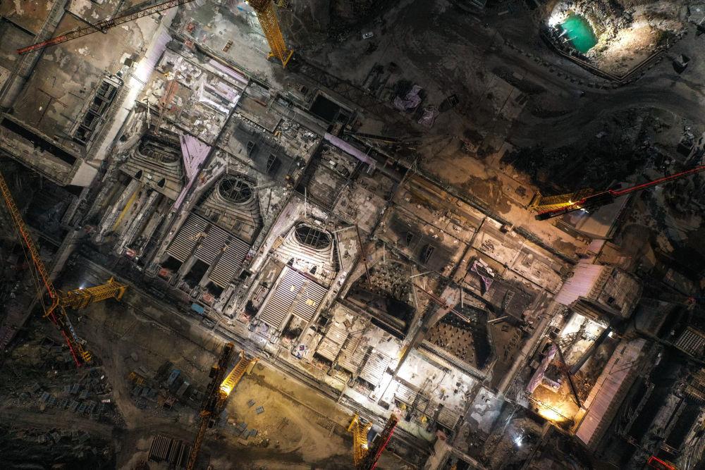 ↑大藤峽水利樞紐位于廣西桂平市西江流域上的黔江河段,是國(guó)務(wù)院確定的172項(xiàng)節(jié)水供水重大水利工程的標(biāo)志性工程。這是工程夜間建設(shè)現(xiàn)場(chǎng)(無人機(jī)照片,1月15日攝)。