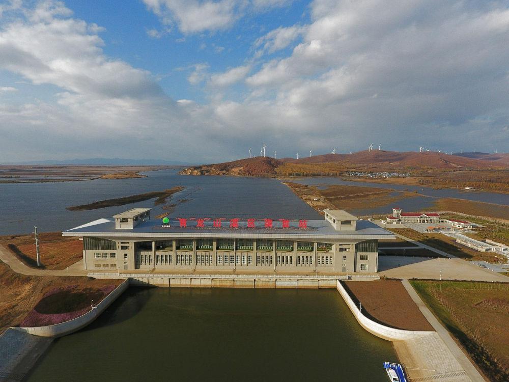 ↑2019年,黑龍江省開始建設(shè)三江灌區(qū)田間配套工程,規(guī)劃渠系17000余條,總長(zhǎng)度超過18000公里,每年可節(jié)省地下水18億立方米。工程可釋放灌區(qū)糧食生產(chǎn)潛力,促進(jìn)穩(wěn)定增產(chǎn),農(nóng)民持續(xù)增收。這是青龍山灌區(qū)渠首站(無人機(jī)照片,10月15日攝)。