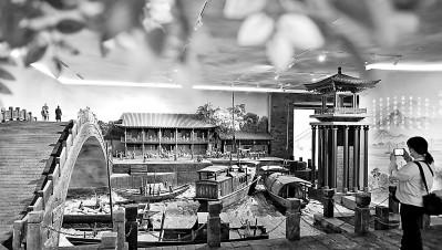 5月18日,市民在位于河南洛陽市的隋唐大運(yùn)河文化博物館內(nèi),參觀復(fù)原的隋唐時期新潭碼頭。黃政偉攝/光明圖片