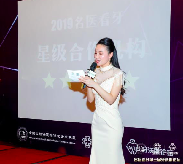 (名醫(yī)看牙第三屆牙沃斯紅酒頒獎(jiǎng)晚宴由名醫(yī)看牙聯(lián)合創(chuàng)始人孫婷女士主持)