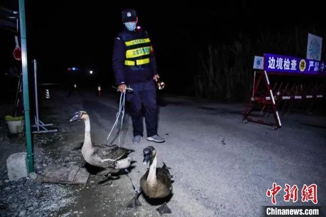 虎年春節(jié),大鵝把守邊疆。廣西陸地邊境線有1020公里長(zhǎng),有3市8縣與國外接壤,每天都需要有工作人員日夜值守;其中,也包括鵝。據(jù)中國新聞網(wǎng)報(bào)道:龍州縣下凍鎮(zhèn)980號(hào)界碑防疫卡點(diǎn),值守人員給他們的“戰(zhàn)友”——兩只兇猛的鵝和兩只狗喂食。鵝對(duì)陌生人和聲音的警覺甚至比狗還敏感。