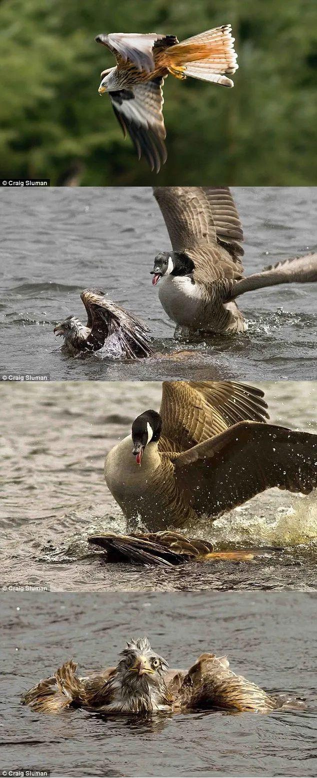 一只小美洲黑雁(Branta hutchinsii)竟“擊沉”鷹隼