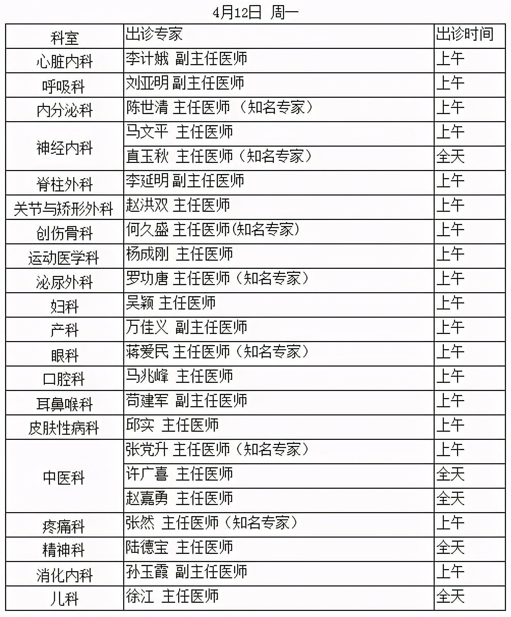 北京中醫(yī)醫(yī)院順義醫(yī)院專家出診安排(4.12—4.18)