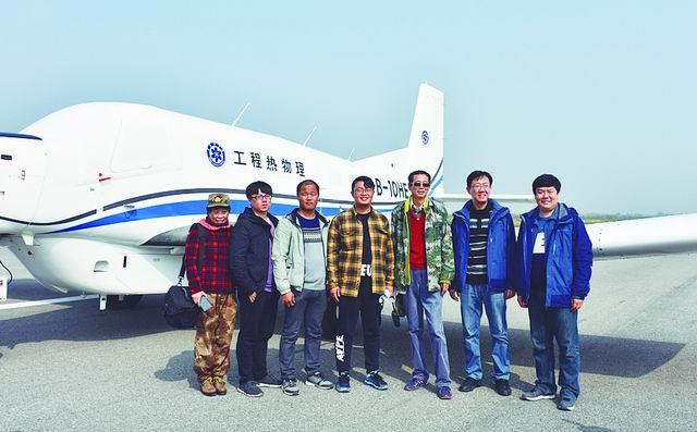 馬曉平(右三)和團(tuán)隊(duì)成員在試飛現(xiàn)場(chǎng)。工程熱物理所供圖