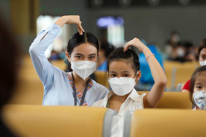 2022年4月24日,在老撾瑯勃拉邦,中老鐵路員工與小乘客合影。新華社發(fā)(楊永全攝)