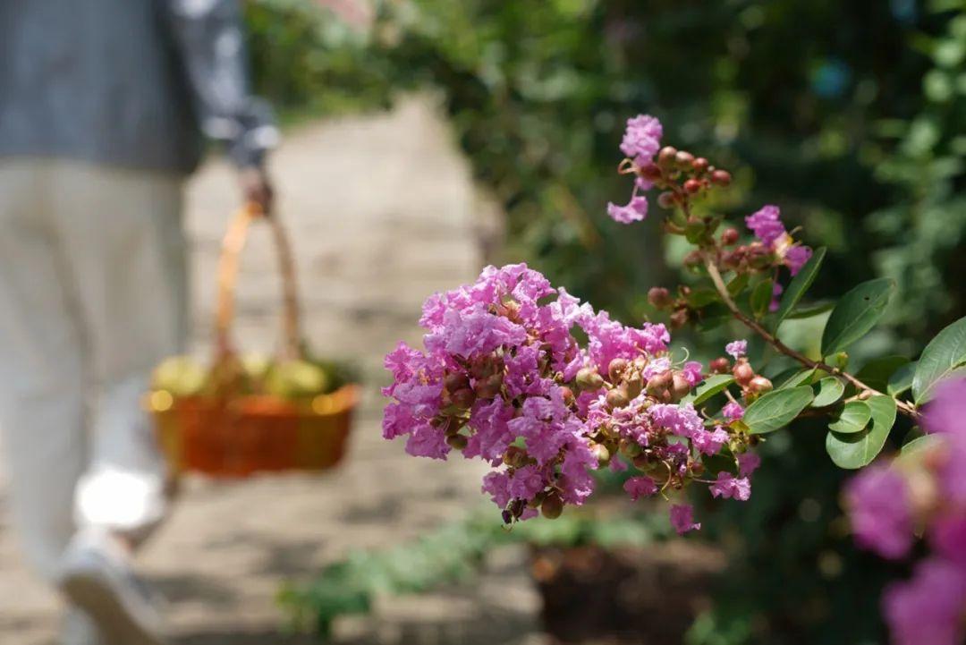 來(lái)到佳友福田,入眼便是迎賓道兩邊開(kāi)得正熱烈的粉紫色紫薇花,開(kāi)心果園里切好的待嘗雪白梨片,初初冰鎮(zhèn)過(guò),一口一片,沁潤(rùn)到心坎里。果園主人隨口吟詩(shī)的注解,按照“韓信點(diǎn)兵”陣列方式修剪的翠冠梨果樹(shù),站在高崗上觀察這片梨園,不自覺(jué)地生出文藝的詩(shī)情來(lái),真正別具一格。