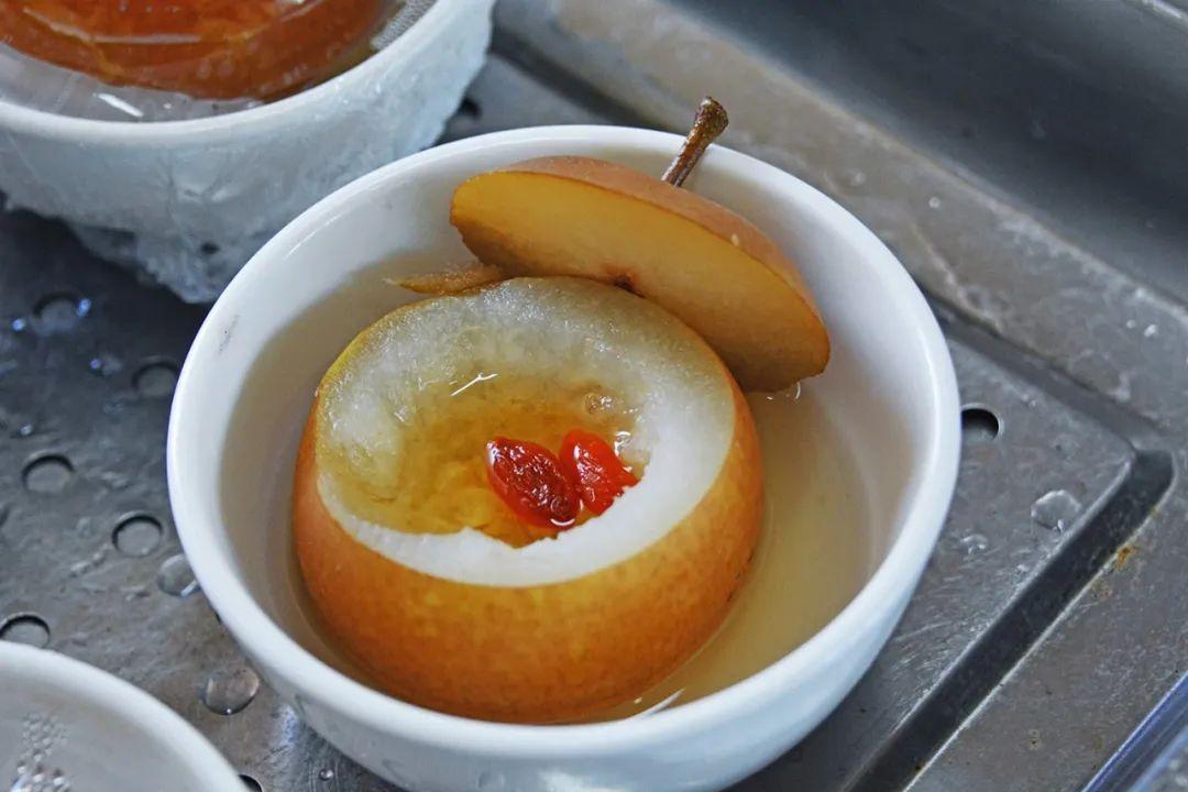在一些產(chǎn)梨區(qū)的農(nóng)家樂(lè)地點(diǎn),甚至還有梨菜:雪梨牛柳、梨汁咸蛋蒸肉餅、梨塊排骨、梨燒烏賊、雞頭米梨羹、拔絲梨等,不僅好吃,還解膩潤(rùn)肺降火。