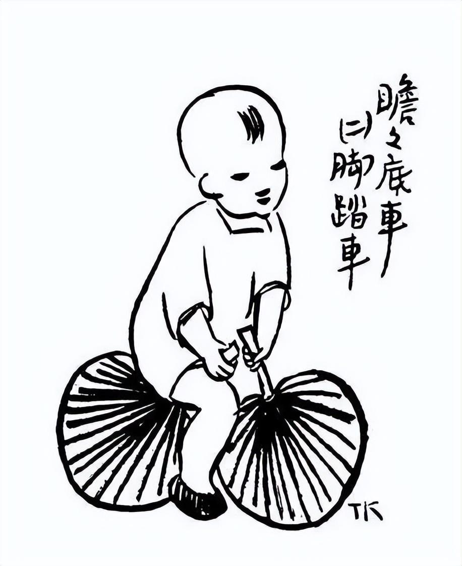 他畫兒子瞻瞻,把蒲扇當(dāng)做車輪,玩得盡興之至;
