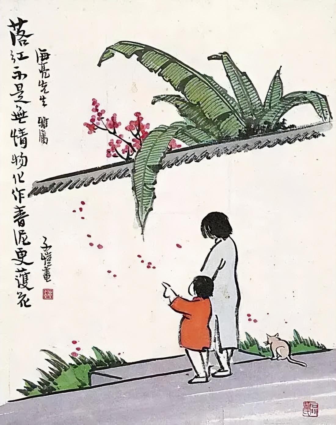 因為畫里洋溢著濃濃的童趣,所以時至今日,豐子愷的畫,依然廣泛出現(xiàn)在孩子們的課本上。