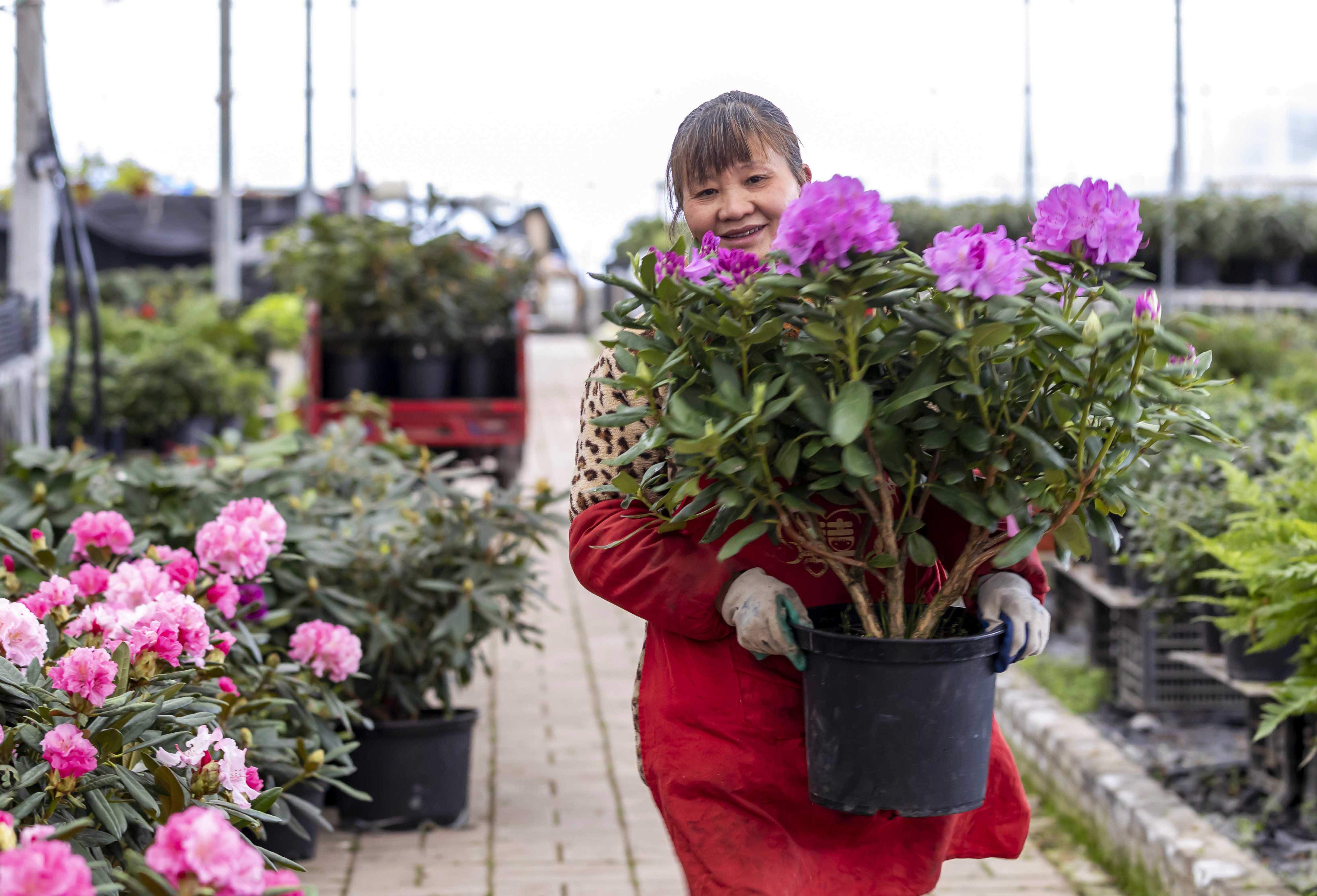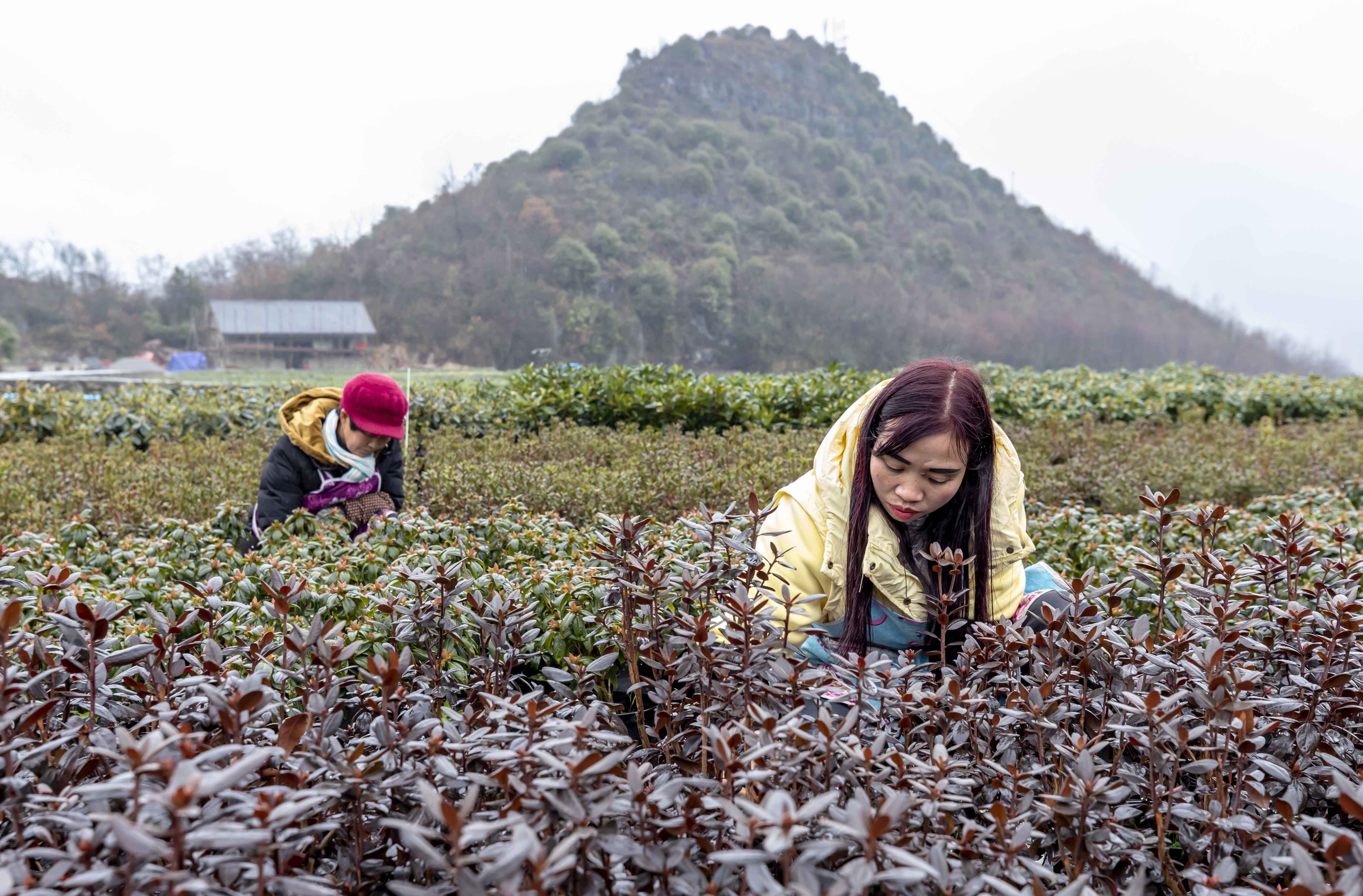 1月3日,村民在貴州省畢節(jié)市百里杜鵑管理區(qū)匯境花卉科技園管護(hù)花卉。 新華社發(fā)(范暉 攝)