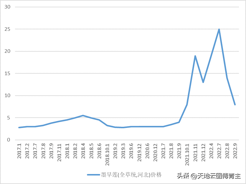 圖:2017-2022年墨旱蓮市場價(jià)格走勢圖