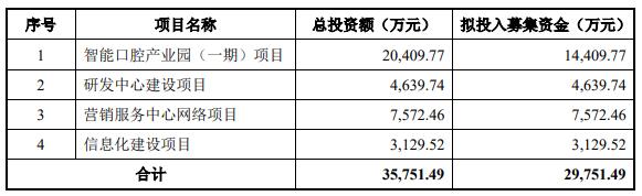 家鴻口腔此次擬募集資金2.98億元,其中,1.44億元用于智能口腔產(chǎn)業(yè)園(一期)項目、4639.74萬元用于研發(fā)中心建設(shè)項目、7572.46萬元用于營銷服務(wù)中心網(wǎng)絡(luò)項目、3129.52萬元用于信息化建設(shè)項目。