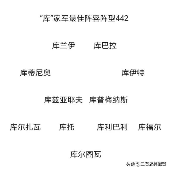 有網(wǎng)友提議做一期庫家軍,我捋了捋三條線都有人,正好庫家軍能湊上一個陣容。前30多期我評選了姓馬的,姓米的,姓范的,姓巴的,姓埃的,姓羅的,姓阿的,姓李的,姓卡的,姓德的,姓斯的,姓薩的,姓西的,姓里的,姓薩的,姓拉的,姓哈的,姓高的,貝家軍,姓布的,維家軍,姓奧的,姓克的,姓帕的,姓內(nèi)的,姓博的,姓雷的,姓佩的,姓坎的,姓伊的,姓梅的,姓基的,格家軍,普家軍,特家軍,托家軍。足球記憶如同我們的青春記憶,我們一起看各路家軍,幫我們一起回憶我們曾經(jīng)看過的球星,追過的球星。敬請大家一起回憶,找出那些我們記憶里的球員。今天將繼續(xù)帶來這一系列,球員中文翻譯名字以庫開頭的球員,希望大家積極互動討論。你的心儀之人有沒有進(jìn)入庫家軍?