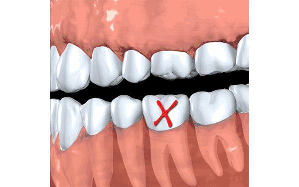 缺牙區(qū)旁邊的牙齒會隨時間慢慢偏移,倒向空缺的空間,空缺的上方或下方的牙會延伸生長。
