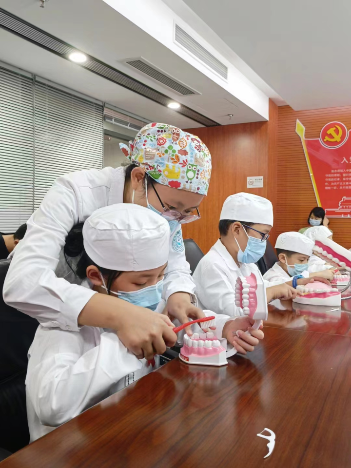 “哪位小朋友能告訴阿姨自己有多少顆牙齒?爸媽有多少顆牙齒?平時(shí)該怎么刷牙?”小小牙醫(yī)上崗前,張慧娟醫(yī)生對(duì)小朋友們進(jìn)行崗前培訓(xùn),生動(dòng)講解牙齒的基本知識(shí),如何正護(hù)牙齒。