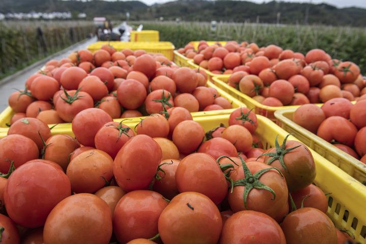 圖為廣西百色市田東縣平馬鎮(zhèn)四平村村民采摘的西紅柿(2022年2月19日攝)。