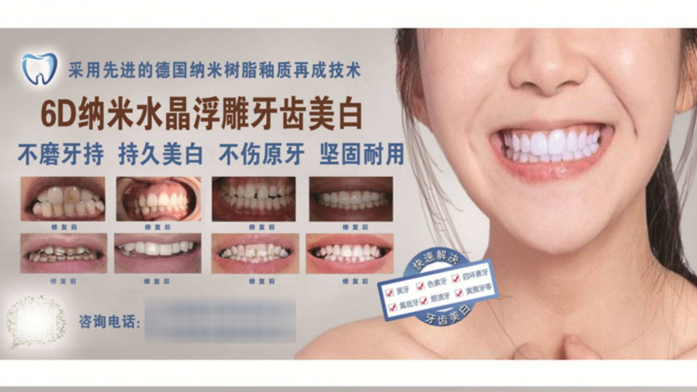 記者走訪了省城濟南幾家大大小小的美牙工作室,發(fā)現(xiàn)他們大都隱藏在居民樓內(nèi)。美牙價格3000元起步,高則到一兩萬元。目前,這些美牙工作室開展的美牙項目,就是在牙齒表面貼上一層樹脂,達到美白的果,類似于給牙齒穿了一層“白衣服”。商家打著4D、 6D納米浮雕的廣告宣傳美牙,看起來十分吸引人。