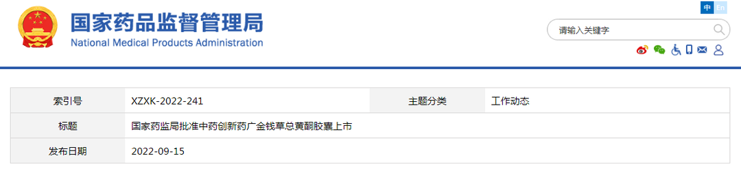藥監(jiān)局批準中藥創(chuàng)新藥廣金錢草總黃酮膠囊上市