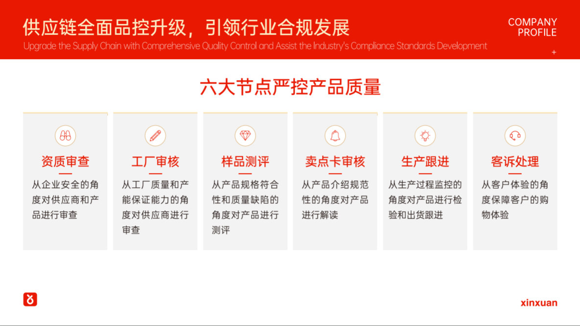 據(jù)辛選相關(guān)負(fù)責(zé)人介紹:“一款產(chǎn)品要想出現(xiàn)在辛選直播間,起碼要經(jīng)過六大環(huán)節(jié):資質(zhì)審查、工廠審核、樣品檢測、賣點卡審核、生產(chǎn)跟進(jìn)、客訴處理。另有‘賣點卡’三審制,主播也是品控的重要一環(huán),我們要對用戶負(fù)責(zé)?!焙卯a(chǎn)品才能成為“爆款”,成就“爆品”,完成對消費者心智的占領(lǐng),建立供消之間的強連接。