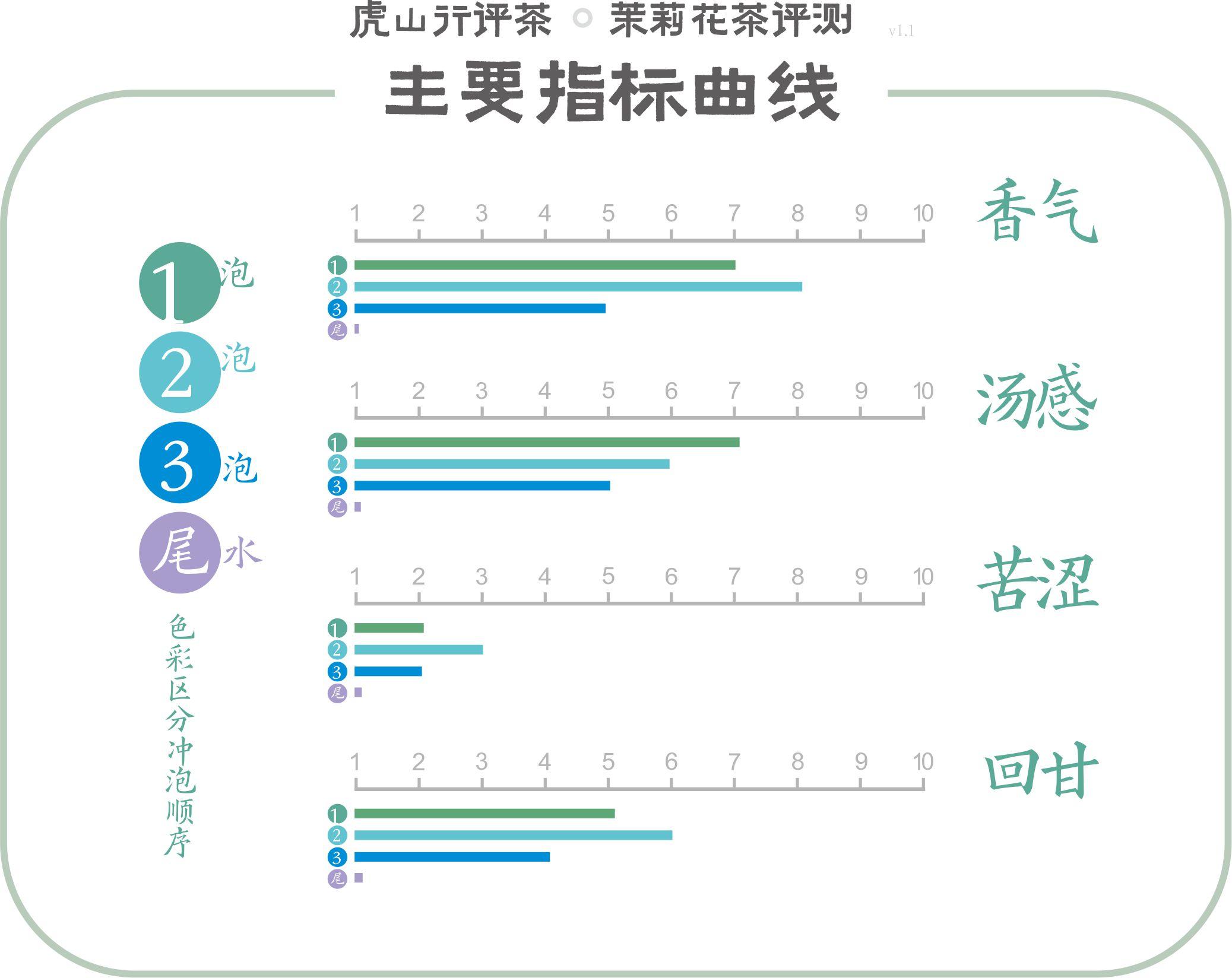 綜合評價總體看碧潭飄雪這款特級茉莉花茶表現還不錯,香氣很濃郁,目前看穩(wěn)定在六窨以上,同時花與茶坯也有所結合,有落水感。同時甜感較,滋味協調性也不錯。唯有苦澀感比較,尤其是澀感稍顯掛舌。