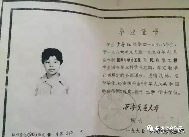 1986年,18歲的巴中姑娘于春紅考入西安交通大學能源與動力工程系核反應堆專業(yè)(俗稱“810”專業(yè))。這是西安交大的專業(yè),當年只有清華、交大等四所學校開設。