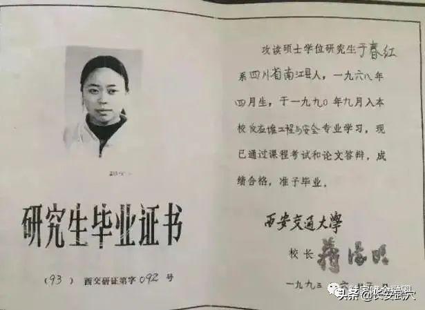 1993年,25歲的四川南江縣姑娘于春紅,考取了西安交通大學熱能工程專業(yè)博士研究生。