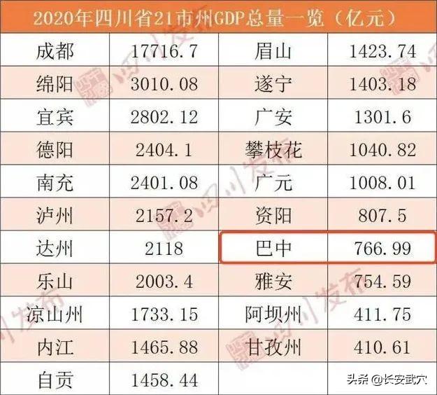 而位于四川的巴中市,2020年GDP在全省21個州市排名倒數(shù)第四。GDP僅766億元。不抵東部一個縣。