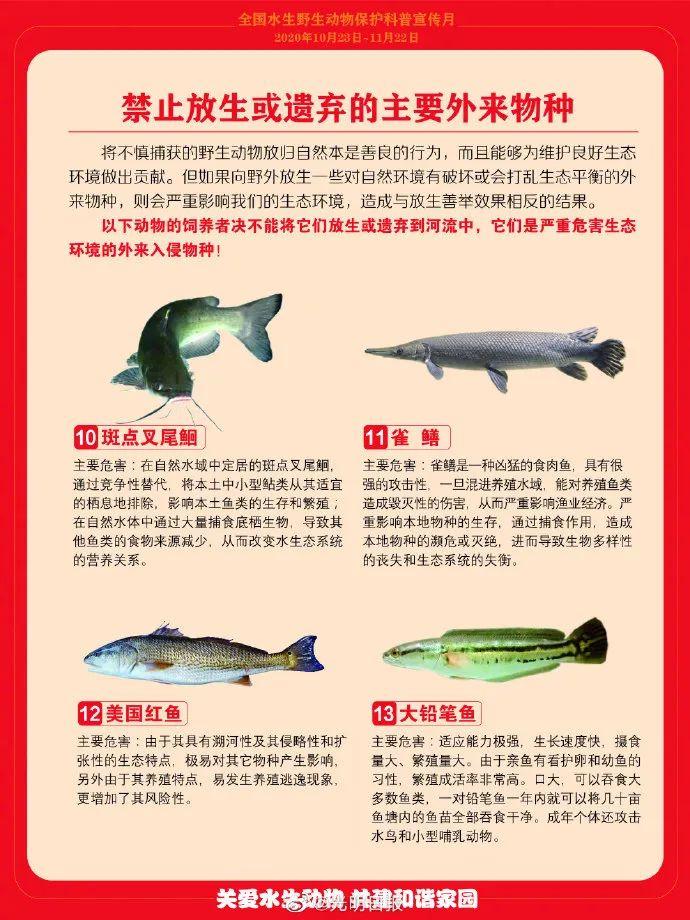 今年七月上海蘇州河上頻現(xiàn)大量死魚成噸的魚蝦被人打著“祈福積德”的旗號放生到蘇州河里轉(zhuǎn)眼一命嗚呼嚴重影響了附近居民的生活這種盲目放生的行為頻上熱搜鱷龜、鱷雀鱔、食人鯧、福壽螺......外來物種被隨意放生對生態(tài)環(huán)境造成了極大的損害放生,本該是保護自然愛護生命的行為但盲目放生不僅危害環(huán)境還可能違法今年8月1日起農(nóng)業(yè)農(nóng)村部、自然資源部、生態(tài)環(huán)境部等聯(lián)合發(fā)布的《外來入侵物種管理辦法》正式開始實施這是我國第一部針對外來物種防控的管理辦法辦法明確任何單位和個人未經(jīng)批準不得擅自引進、釋放或者丟棄外來物種未經(jīng)批準擅自引進、釋放或者丟棄外來物種的將依照《中華人民共和國生物法》第81條進行處罰涉嫌犯罪的將依法移送司法追究刑事責(zé)任目前我國已發(fā)現(xiàn)660余種入侵生物中國水產(chǎn)科學(xué)研究院珠江水產(chǎn)研究所副研究員顧黨恩表示要從源頭抓起從引種到貿(mào)易,加強監(jiān)管另外,也要杜絕人為放生保護好生態(tài)環(huán)境另外,特別提醒不能吃!