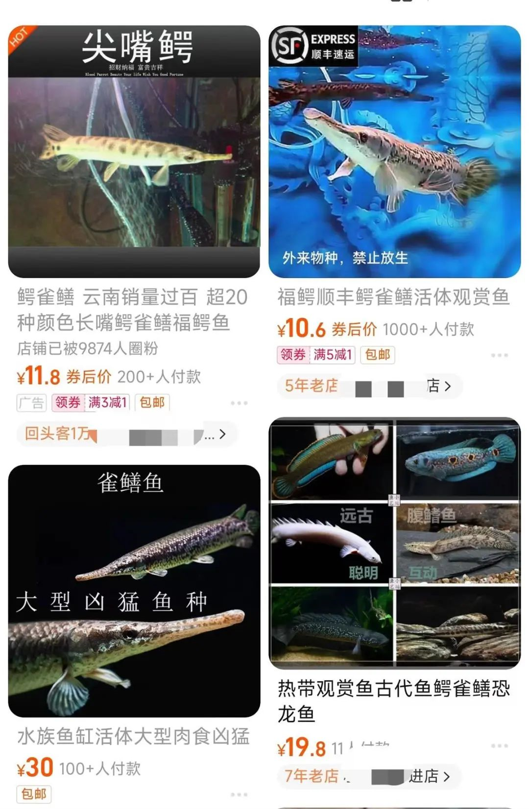 網(wǎng)店銷售鱷雀鱔(來源:網(wǎng)絡(luò)截圖)