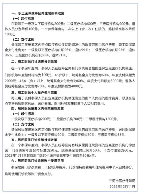 河北:三河市發(fā)布新冠病毒感染者醫(yī)保報銷政策明白紙