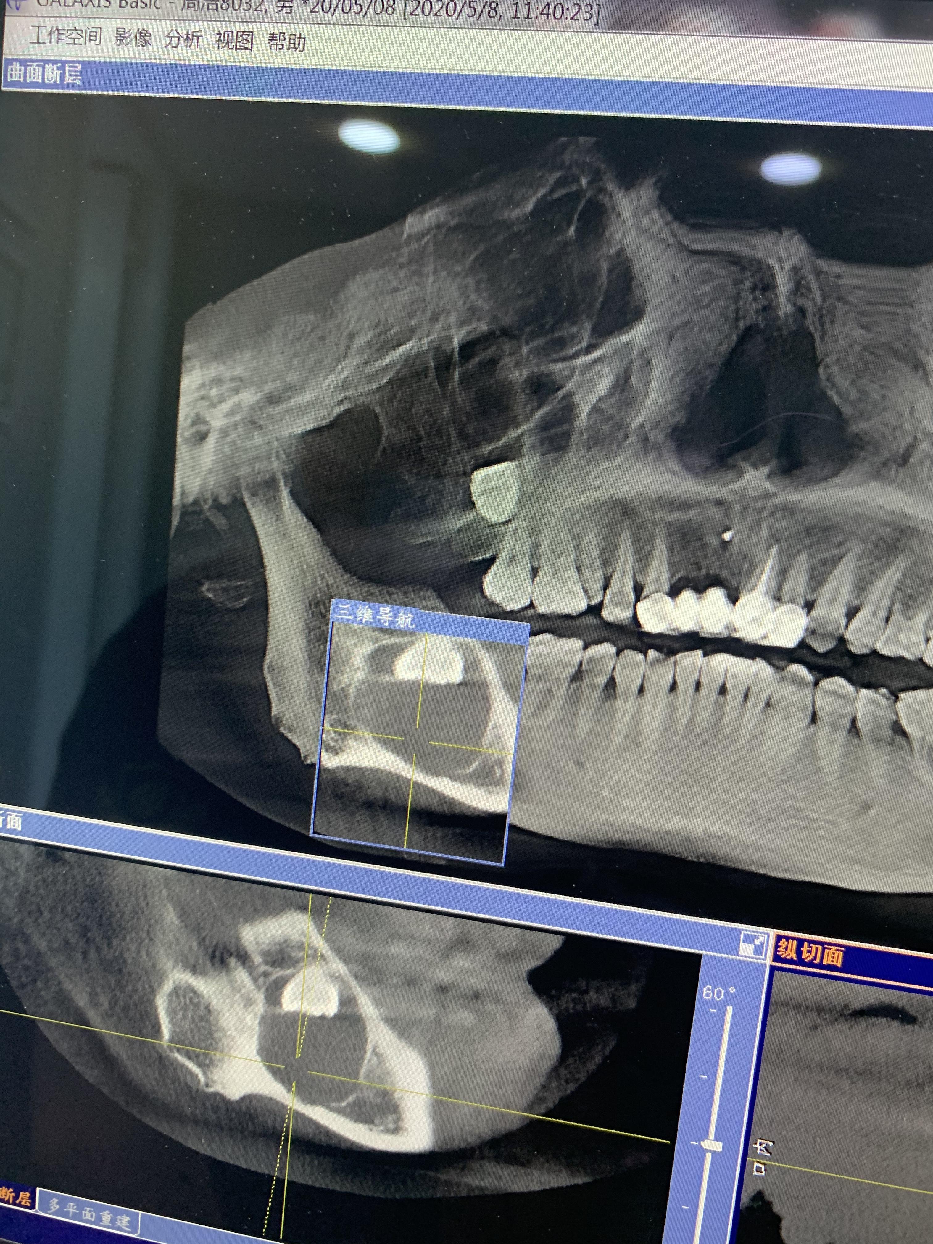 5月8日上午9點(diǎn)半,牙博士醫(yī)生把我叫到房間看片子,打開我的片子,他一句“我的天,這應(yīng)該是囊腫,骨頭都要斷了,天啦骨頭都跟紙一樣薄了,不行,我去找院長來”,他出去了,我一個(gè)人坐在那楞住了,這不是智齒嗎?什么囊腫?骨頭斷了?我的天,我瞬間感覺我是不是要廢掉了~