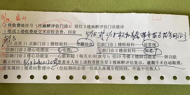 手術(shù)時(shí)間確認(rèn)后,王醫(yī)生給我開了一張住院申請單,送到1樓日間手術(shù)管理中心,然后前往3樓收費(fèi)掛號麻醉評估,具體流程和檢查事項(xiàng)可以查看下面圖片信息: