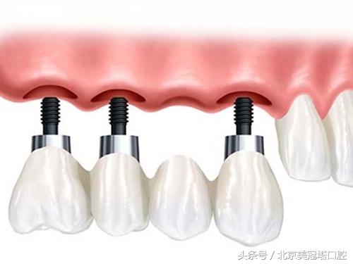 掛鉤假牙依靠金屬鉤及膠托固定,容易松動(dòng),僅能恢復(fù)部分咀嚼功能。安裝烤瓷牙則必須磨削兩側(cè)鄰牙,充當(dāng)“橋墩”來(lái)固定聯(lián)體烤瓷牙。
