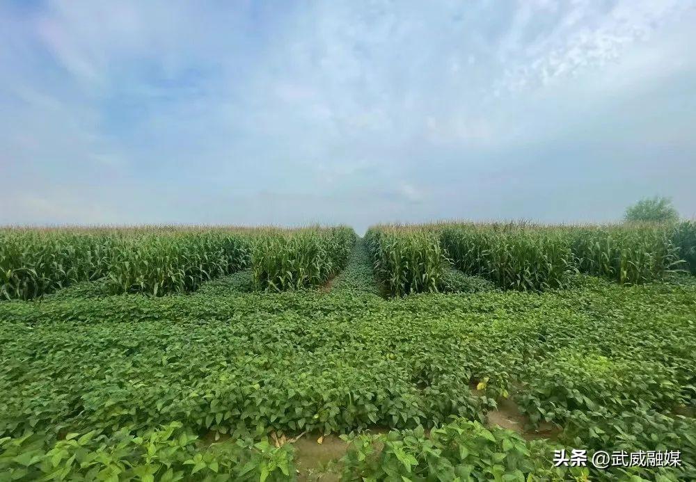 盛夏武威,滿目蒼翠。走進(jìn)涼州區(qū)武南鎮(zhèn)大豆玉米帶狀復(fù)合種植基地,一排排玉米碧綠健壯、茁壯生長,一壟壟大豆生機勃勃、郁郁蔥蔥……
