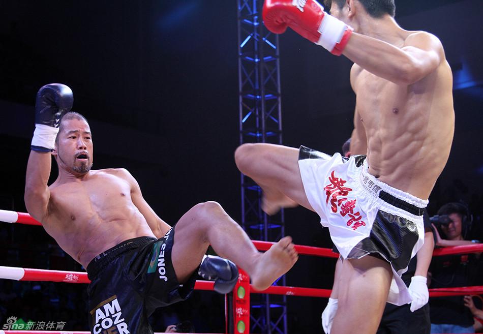 前四周的小組賽和半決賽日本全線潰敗,只有41歲“妖人”鄉(xiāng)野聰寬在72KG突出重圍殺入重慶賽區(qū)的決賽,捍衛(wèi)日本搏擊大國(guó)榮譽(yù)而戰(zhàn)。在7月17日的“中日4”,鄉(xiāng)野聰寬大發(fā)神威連克宋少秋與文金都兩位中國(guó)小將躋身決賽。這一次,他面對(duì)的是2015年中國(guó)自由搏擊賽72kg亞軍吳思翰。從身高看,吳思翰188cm比175cm的鄉(xiāng)野聰寬高出近一頭??蓮哪挲g看,41歲的鄉(xiāng)野聰寬比19歲的吳思翰大一倍還多。