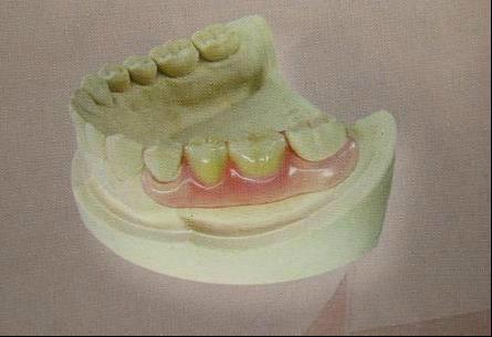適合于前牙區(qū)過(guò)渡性義齒修復(fù),無(wú)卡環(huán)設(shè)計(jì)美觀固位好,因?qū)ρ例l有壓迫刺激不宜長(zhǎng)期使用。