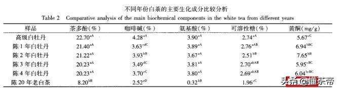 之所以20年老白茶中茶多酚、咖啡堿、氨基酸等生化成分含量降低,而黃酮類物質(zhì)增高的原因,可能是茶葉在貯藏過程中多酚類物質(zhì)結(jié)構(gòu)發(fā)生了變化,促成了黃酮類物質(zhì)的形成。