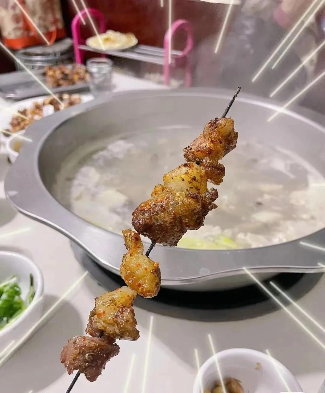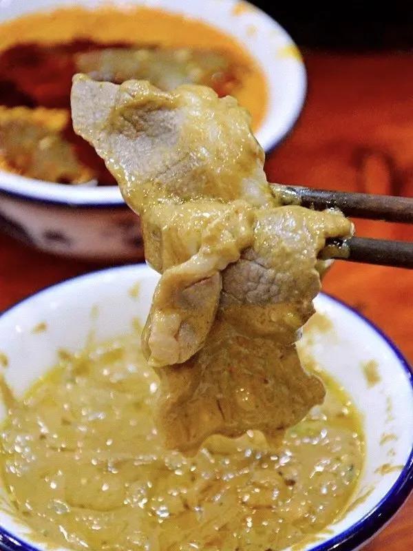 香噴噴的鮮羊肉沾上秘制麻辣醬 嚼在嘴里滿滿的都是羊肉鮮香,這種霸道的鮮香是凍切羊肉無法比擬的,不管是涮青菜還是涮毛肚,都能你的味蕾瞬間淪陷。