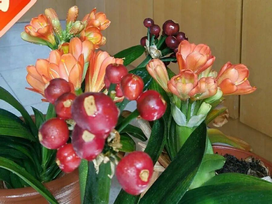 君子蘭開花后也會結籽,如果你家開完沒有結籽,可能是沒有授粉成功,一般植物都可以自然授粉(風吹、昆蟲),也可以人工用棉簽蘸取雄蕊上的花粉蹭到雌蕊上。