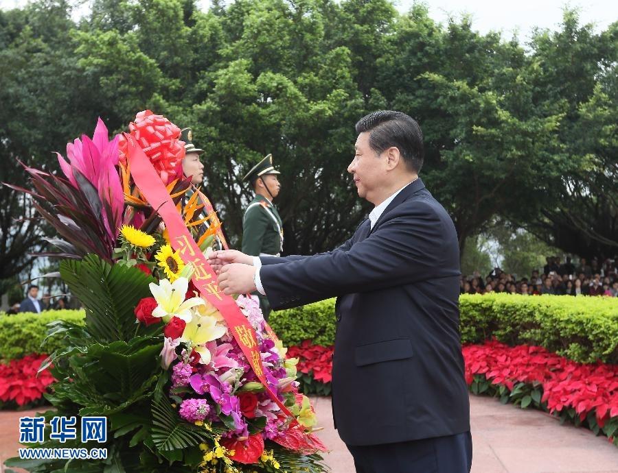 2012年12月,在深圳蓮花山公園向銅像敬獻(xiàn)花籃。 新華社記者蘭紅光攝