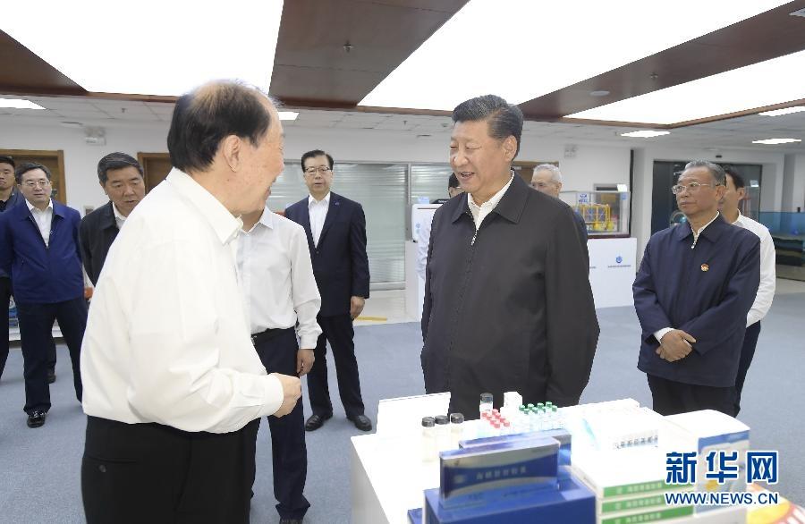 6月12日,在青島海洋科學(xué)與技術(shù)試點(diǎn)實(shí)驗(yàn)室,同科研人員親切交談。 新華社記者 李學(xué)仁 攝