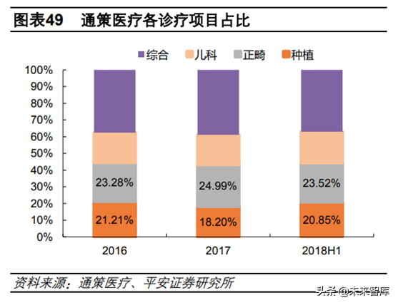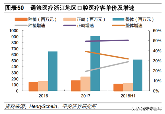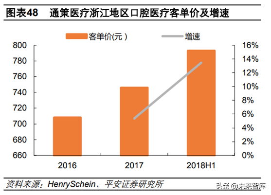 客單價提升主要由于正畸和種植業(yè)務快速增長。2018H1公司正畸和種植業(yè)務收入分別為1.22億元和1.09億元,分別同比增長50.52%和29.05%,正畸增速遠高于整體水平,種植增速相比2017年提升,基本與整體持平??春霉境掷m(xù)受益口腔消費升級。