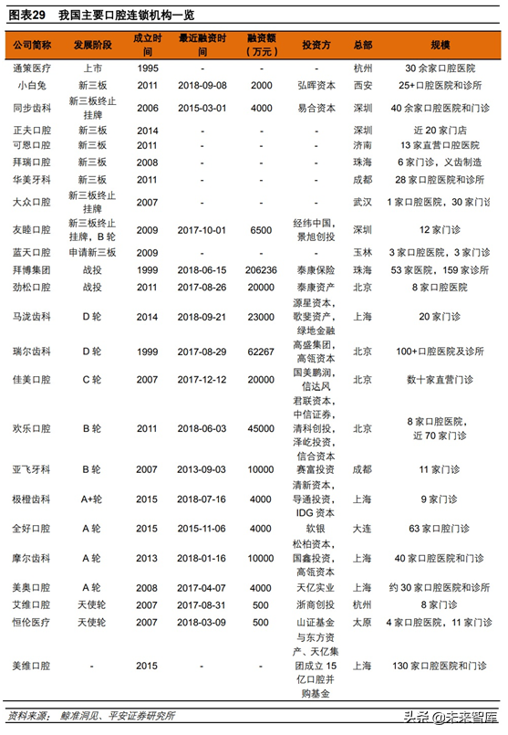 目前我國尚未有專業(yè)的DSO企業(yè),但我們認為隨著國內(nèi)口腔醫(yī)療快速發(fā)展,以及診所專業(yè)化程度提升,未來DSO企業(yè)有其生存土壤,建議關注。