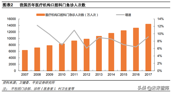 二、我國口腔醫(yī)療市場近千億,即將迎來黃金時代2.1我國口腔醫(yī)療達千億規(guī)模,增長確定性強