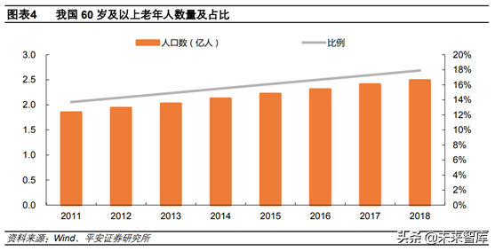 牙科患病率隨年齡增長而提升,老齡化影響顯著。齲病和牙周疾病是我國常見的兩種口腔疾病,從齲患率就可以看出,隨著年齡的增長,相關口腔疾病的患病率呈上升趨勢。2017年我國60歲及以上老年人口數(shù)量達到2.49億人,占總?cè)丝诒壤_到17.9%,遠超過10%的老齡化社會標準。據(jù)多部門預測,2030年我國60歲及以上老年人口占比將超過25%,將帶來大量口腔醫(yī)療需求。
