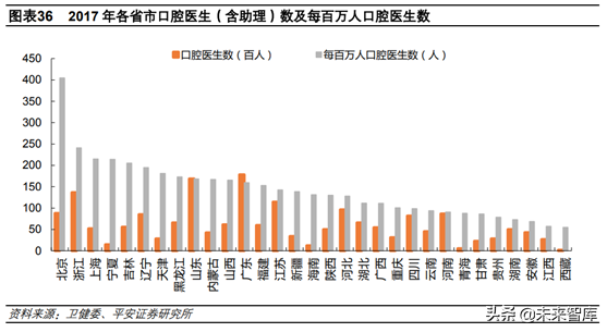當前我國一線城市和部分二線城市人均可支配收入水平可以支持種植和正畸的發(fā)展,同時這些城市擁有大量口腔醫(yī)生,服務能力強。我們預計種植和正畸兩大高價值項目將率先在一二線城市發(fā)展起步,然后向三四線城市擴展。