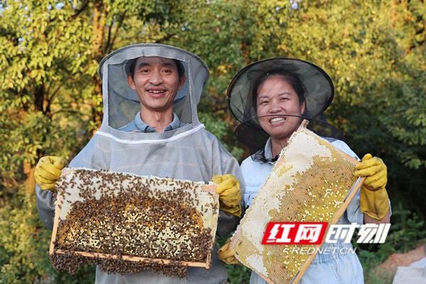 對(duì)于想學(xué)養(yǎng)蜂技術(shù)的貧困戶,他主動(dòng)分享脫貧“蜜”訣,提供上門服務(wù)。“遇到養(yǎng)殖難題,只要一個(gè)電話,小吳就會(huì)第一時(shí)間上門服務(wù)?!笔R山街道古泉村脫貧戶譚文國跟隨吳農(nóng)斌養(yǎng)蜂,規(guī)模已達(dá)40多箱,今年收入有望達(dá)到4萬元。到現(xiàn)在,吳農(nóng)斌已對(duì)接18名脫貧戶,幫助他們共同釀造甜蜜生活。吳農(nóng)斌和妻子每天忙得連軸轉(zhuǎn),雖然疲憊不堪,但感覺更甜的是幫助更多農(nóng)特產(chǎn)品走向了全國,幫助更多脫貧戶增加了收入,自己的收入也一年年“看漲”。